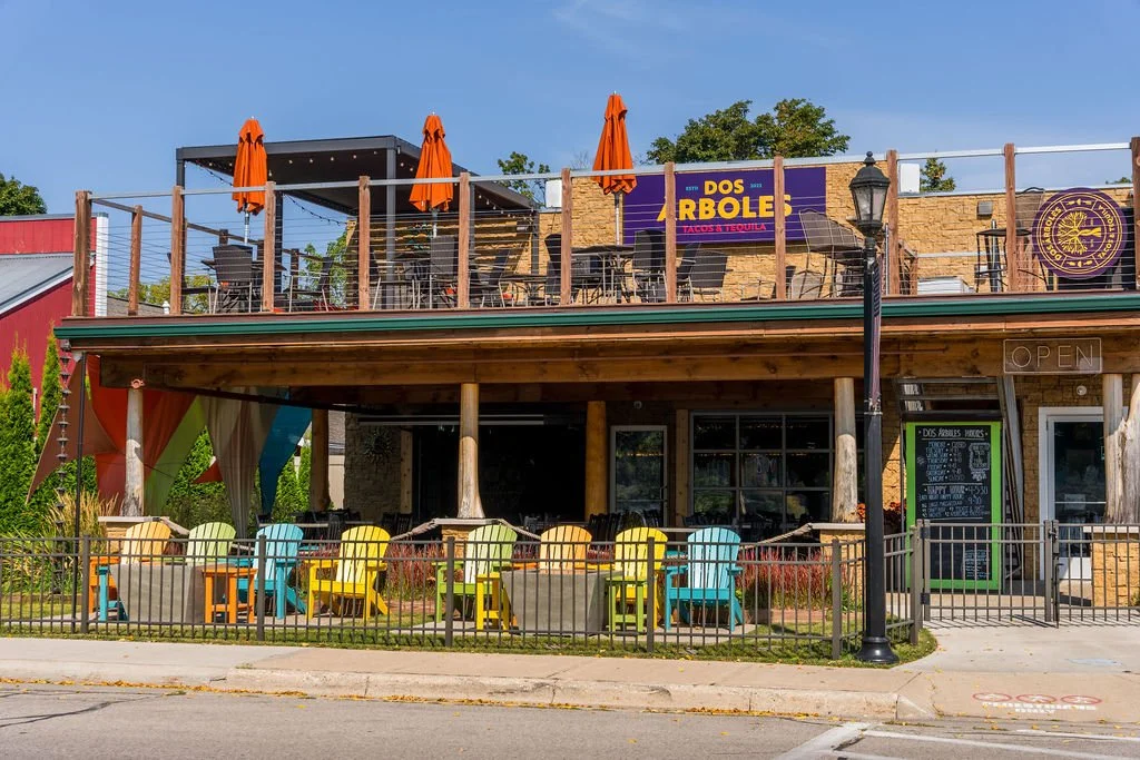 Dos Arboles offers an extensive collection of over 250 tequilas and mezcals, enhanced by a rooftop deck and bar that provides stunning views of Betsie Bay.