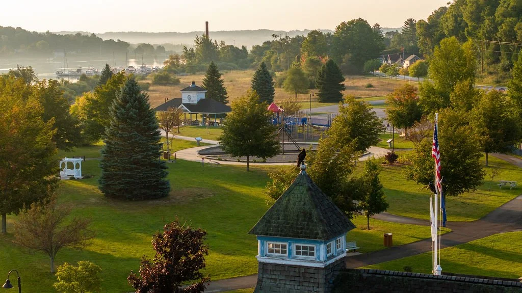 Open Space Park is a vibrant community landscape where the energy of downtown Frankfort meets the scenic beauty of Betsie Bay.