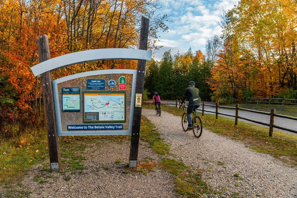 This multi-use trail is a favorite for cyclists, runners, and nature lovers, offering stunning views of Betsie Bay, Crystal Lake, and local forests.